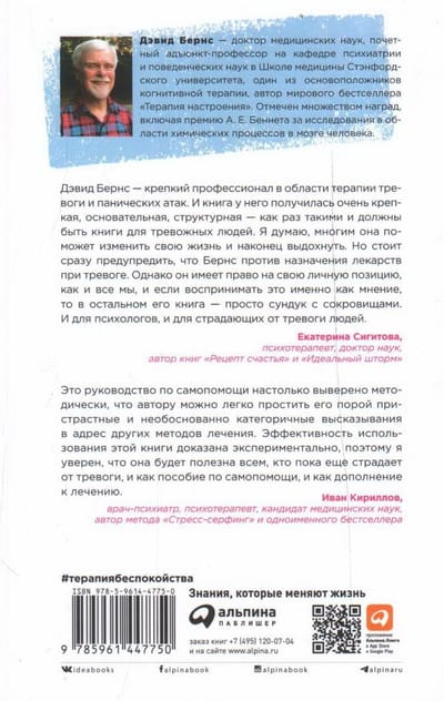Вы переживаете, что излишне застенчивы или постоянно во всем сомневаетесь? Вы не можете нормально спать, беспокоясь о своей работе, здоровье или отношениях? Вас мучает страх высоты или начинается паническая атака, когда садитесь за руль автомобиля? Дело в том, что в основе тревожных состояний лежат иррациональные убеждения, которые делают вас уязвимым и способны привести к депрессии, утверждает психотерапевт Дэвид Бернс, автор международного бестселлера «Терапия настроения» и один из основоположников когнитивно-поведенческой терапии. В своей новой книге он предлагает 40 простых и эффективных техник, которые помогут вам разобраться в причинах ваших тревог, справиться с негативными мыслями и преодолеть свои страхи. Доктор Бернс также делится результатами исследований лекарств, обычно назначаемых при депрессии, и объясняет, почему они иногда могут принести больше вреда, чем пользы.