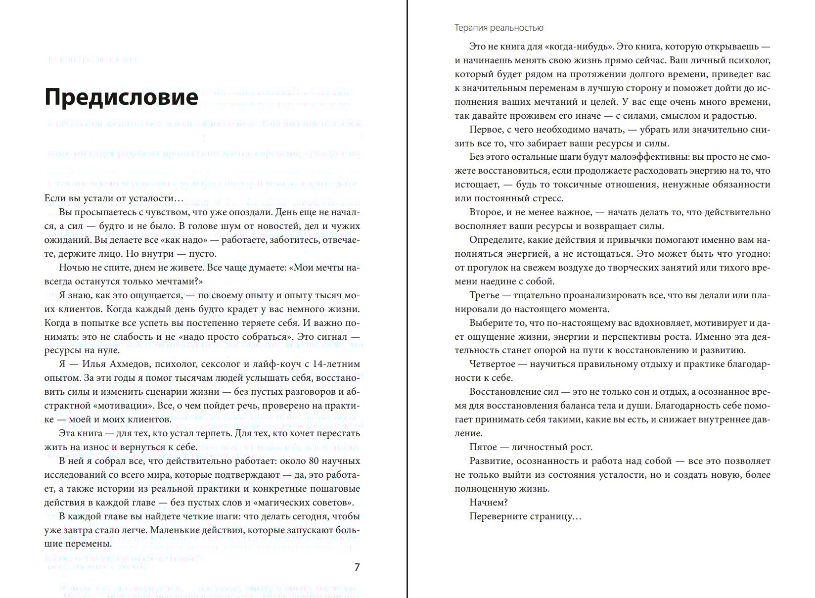 Каждый их этих этапов подробно описан: автор объясняет причины и рассказывает, как решить проблему — с примерами, кейсами и историями. Метод «Терапия реальностью» в книге дополнен инструментами психоанализа, КПТ и эмоционально-образной терапии.