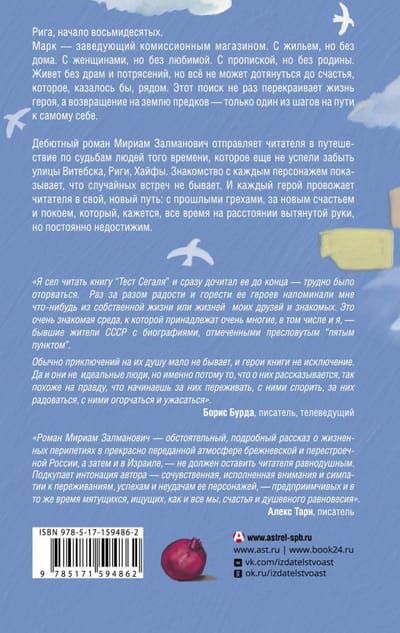Марк — заведующий комиссионным магазином. С жильем, но без дома. С женщинами, но без любимой. С пропиской, но без родины. Живет без драм и потрясений, но всё не может дотянуться до счастья, которое, казалось бы, рядом. Этот поиск не раз перекраивает жизнь героя, а возвращение на землю предков — только один из шагов на пути к самому себе. Дебютный роман Мириам Залманович отправляет читателя в путешествие по судьбам людей того времени, которое еще не успели забыть улицы Витебска, Риги, Хайфы. Знакомство с каждым персонажем показывает, что случайных встреч не бывает. И каждый герой провожает читателя в свой, новый путь: с прошлыми грехами, за новым счастьем и покоем, который, кажется, все время на расстоянии вытянутой руки, но постоянно недостижим.
