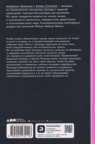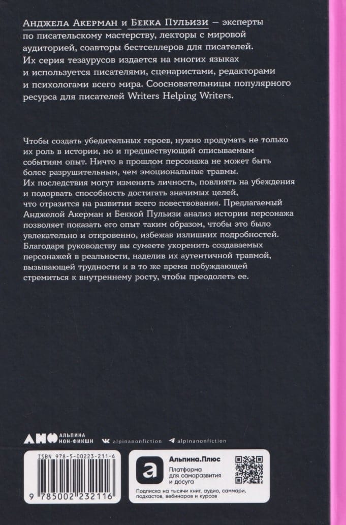 Чтобы создать убедительных героев, нужно продумать не только их место в истории, но и предшествующий описываемым событиям опыт. Ничто в прошлом персонажа не может быть более разрушительным, чем эмоциональные травмы. Их последствия могут изменить личность, повлиять на убеждения и подорвать способность достигать значимых целей, что отразится на развитии всего повествования. Предлагаемый авторами анализ истории персонажа позволяет показать читателям опыт героя таким образом, чтобы это было увлекательно и откровенно, избегая излишних подробностей. Благодаря этому руководству вы сумеете укоренить создаваемых персонажей в реальности, наделив их аутентичной травмой, вызывающей трудности и в то же время побуждающей стремиться к внутреннему росту, чтобы преодолеть ее.