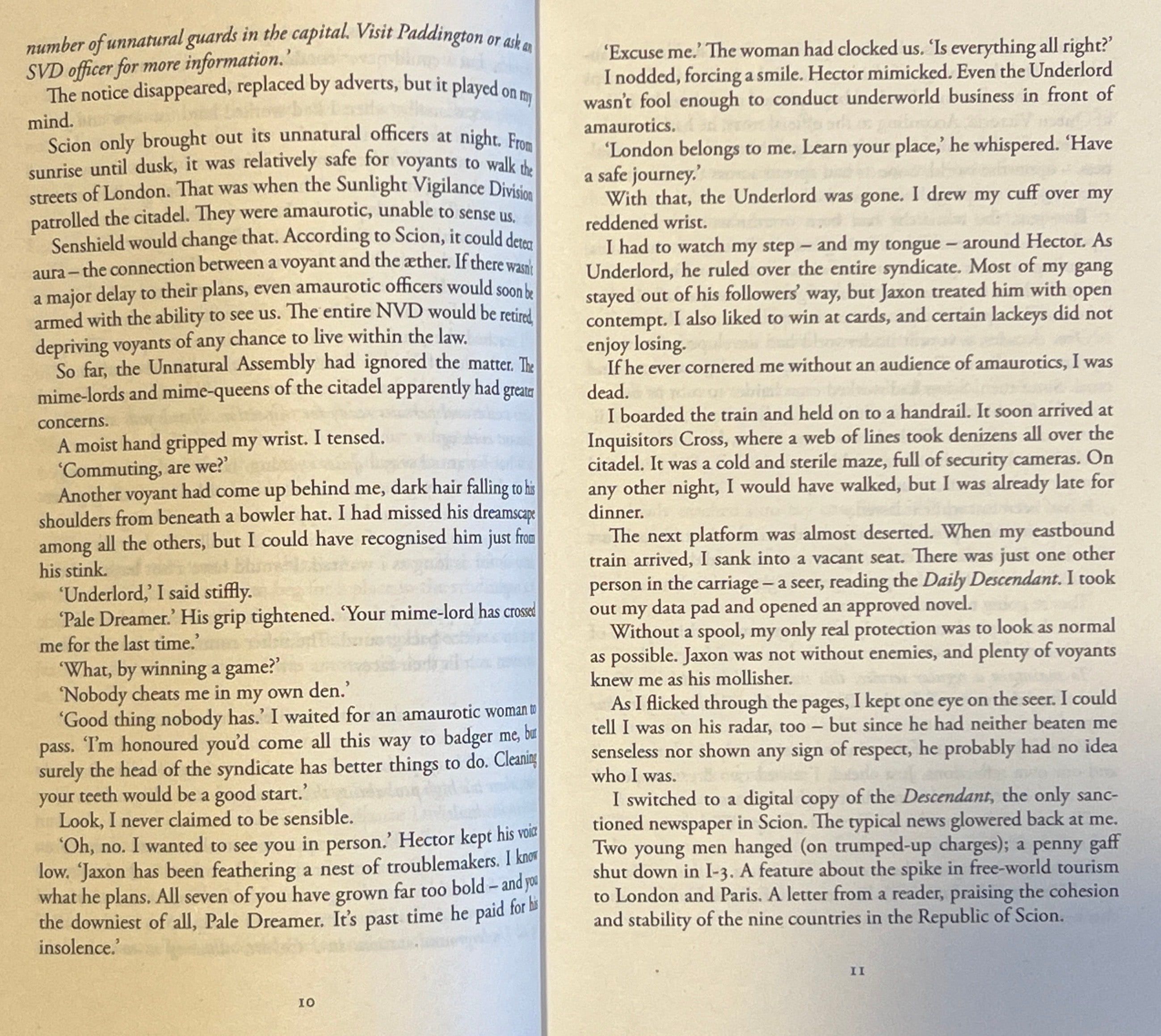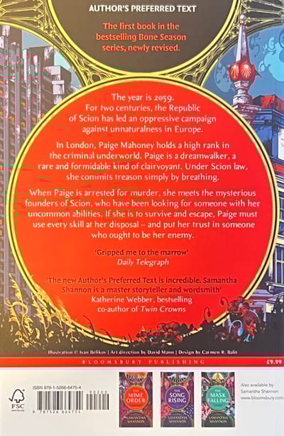 In London, Paige Mahoney holds a high rank in the criminal underworld. The right hand of the ruthless White Binder, Paige is a dreamwalker, a rare and formidable kind of clairvoyant. Under Scion law, she commits treason simply by breathing.