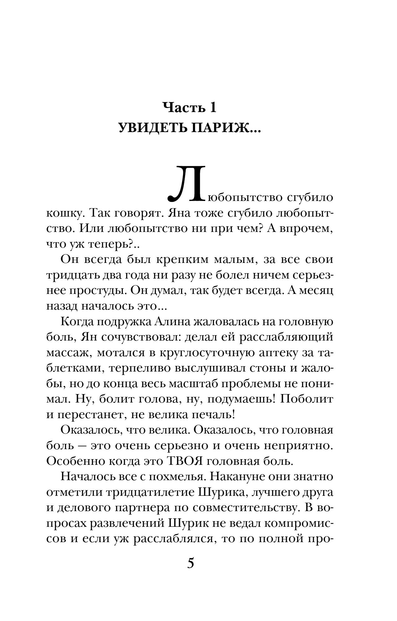Когда Ян из подслушанного разговора врачей узнал, будто жить ему осталось всего ничего, молодой человек понял — надо перестать мечтать о Париже, а немедленно туда ехать! Решено — сделано, тем более и попутчица нашлась — девушка Тина, любительница готических нарядов, похожая на диковинную черную птицу.