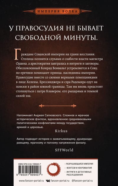 Битва за Долину Гейл закончилась, но война за будущее Империи только начинается. Обеспокоенный слухами о том, что власть магистра Ордена ослабевает, сэр Конрад Вонвальт возвращается в Сову и обнаруживает, что столица охвачена слухами о восстании. В Ордене Магистров плетут интриги против императора, а еретики открыто проповедуют на улицах.