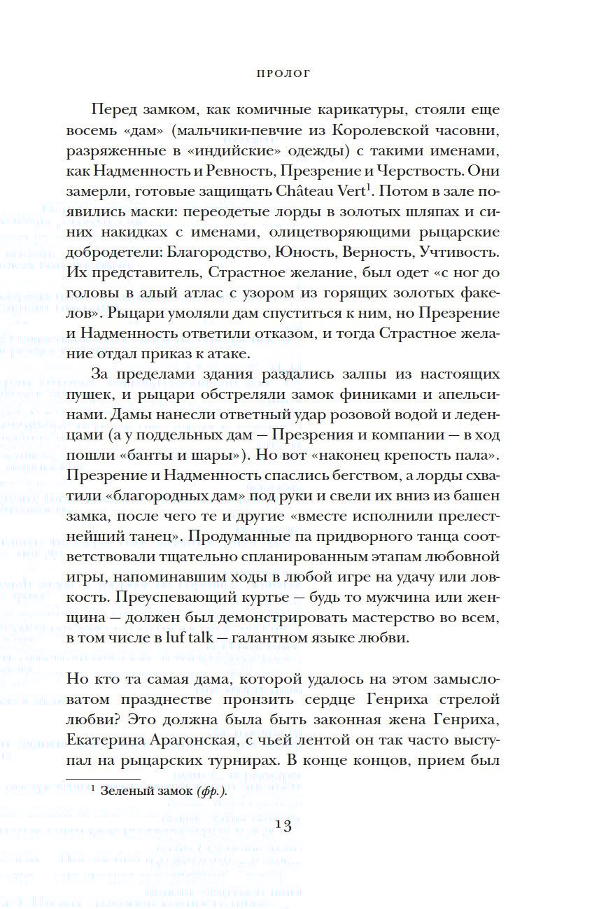История Тюдоров – это история власти и любви. Основатель династии, король Генрих VII, использовал легенды о короле Артуре и рыцарях Круглого стола, чтобы обосновать свои притязания на корону. Генрих VIII считал куртуазную любовь оправданием своей бурной брачной жизни. Когда на престол взойдет его дочь Елизавета, куртуазная любовь сыграет особую роль в ее женской монархии. Исследовательница Сара Гриствуд рассказывает историю о том, как любили Тюдоры – самая знаменитая династия Средневековья. Осада Замка любви и рыцарские турниры, кодекс куртуазной любви и романтическая традиция о Гвиневре – все это легло в основу власти Тюдоров и пронизало эпоху, в которую они жили. Это эпоха, которую определяли пылкие сердца принцев и поэтов, фрейлин и королев.