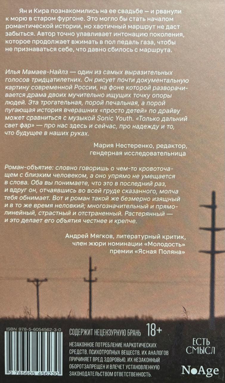 Ян и Кира познакомились на ее свадьбе — и рванули к морю в старом фургоне. Это могло бы стать началом романтической истории, но хаотичный маршрут не даст забыться. Автор точно улавливает интонацию поколения, которое продолжает вжимать в пол педаль газа, чтобы не признаваться себе, что давно сбилось с маршрута.