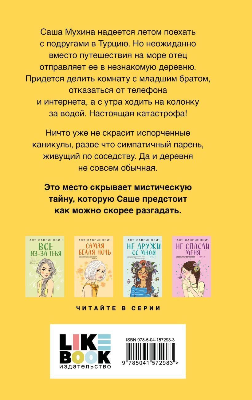 Ничто уже не скрасит испорченные каникулы, разве что симпатичный парень, живущий по соседству. Да и деревня не совсем обычная. Это место скрывает мистическую тайну, которую Саше предстоит как можно скорее разгадать.