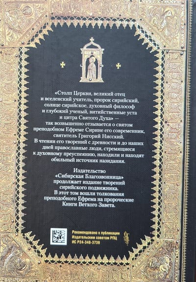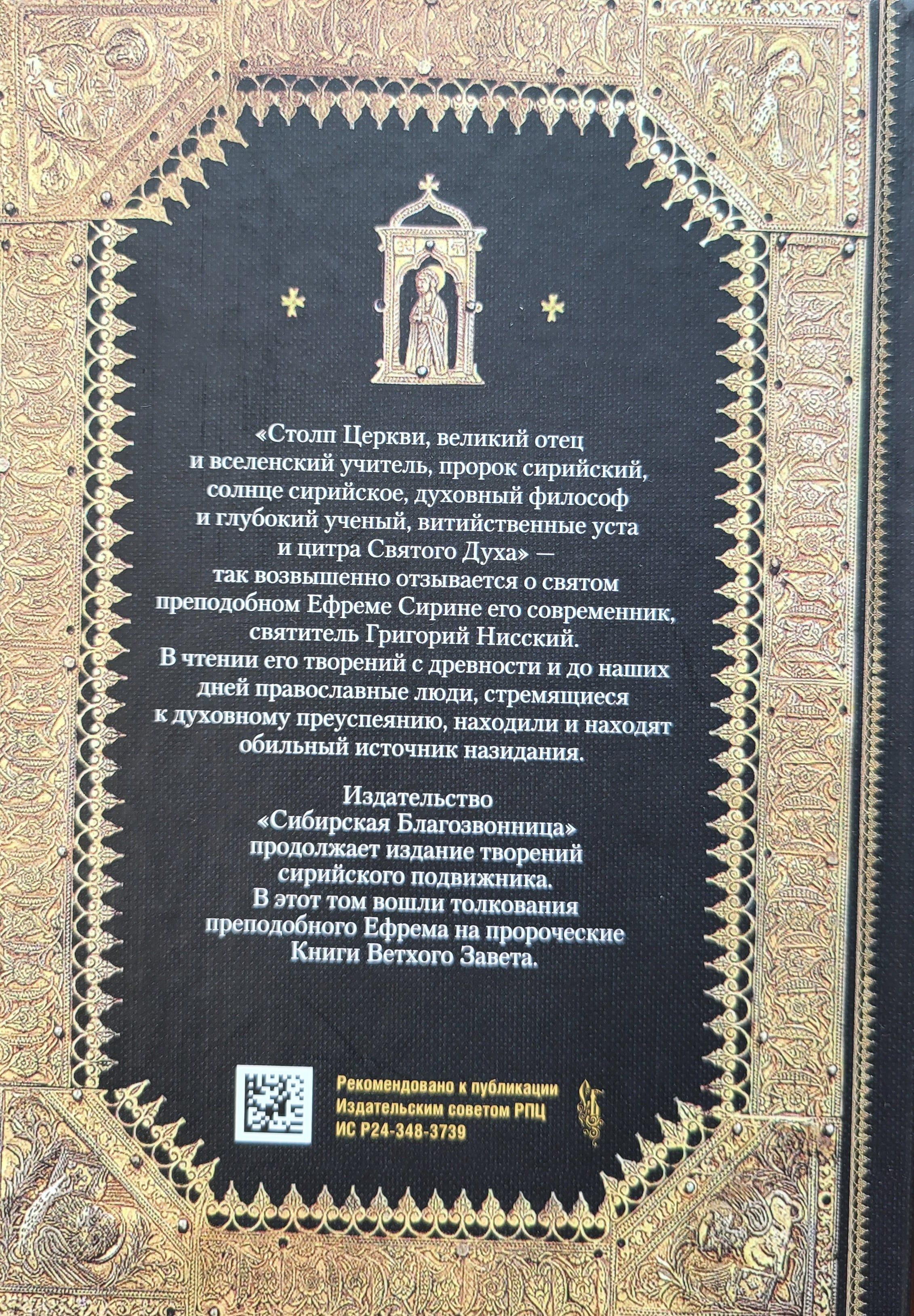 «Столп Церкви, великий отец и вселенский учитель, пророк сирийский, солнце сирийское, духовный философ и глубокий ученый, витийственные уста и цитра Святого Духа» — так возвышенно отзывается о святом преподобном Ефреме Сирине его современник, святитель Григорий Нисский. В чтении его творений с древности и до наших дней православные люди, стремящиеся к духовному пре-успеянию, находили и находят обильный источник назидания. Издательство «Сибирская Благозвонница» продолжает издание творений сирийского подвижника. В эту книгу вошли толкования преподобного Ефрема на пророческие Книги Ветхого Завета.