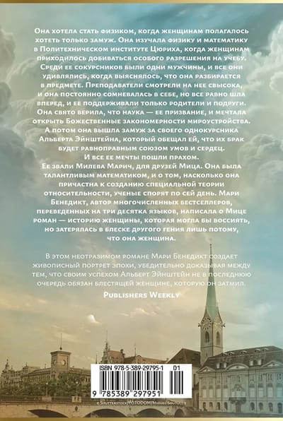 Ее звали Милева Марич, для друзей Мица. Она была талантливым математиком, и о том, насколько она причастна к созданию специальной теории относительности, ученые спорят по сей день. Мари Бенедикт, автор многочисленных бестселлеров, переведенных на три десятка языков, написала о Мице роман «Тоже Эйнштейн» — историю женщины, которая могла бы воссиять, но затерялась в блеске другого гения лишь потому, что она женщина.