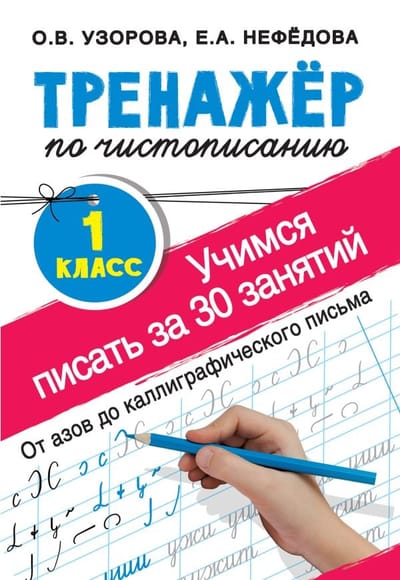 Тренажер по чистописанию. Учимся писать всего за 30 занятий. 1 класс . От азов до каллиграфического письма соответствует ФГОС и программе обучения в 1 классе. Его авторы — известные педагоги-практики О. В. Узорова и Е. А. Нефёдова. Тренажёр представляет собой рабочую тетрадь, в которой первоклассники потренируются аккуратно и красиво писать буквы, их элементы, варианты соединений, а также слоги, слова и предложения. Выполнение приведённых в пособии заданий поможет ученикам выработать красивый почерк и увеличить скорость письма. Использование в книге второго цвета ускорит процесс освоения учебного материала. Пособие можно использовать в качестве дополнительного материала на уроках в классе, а также для работы дома.