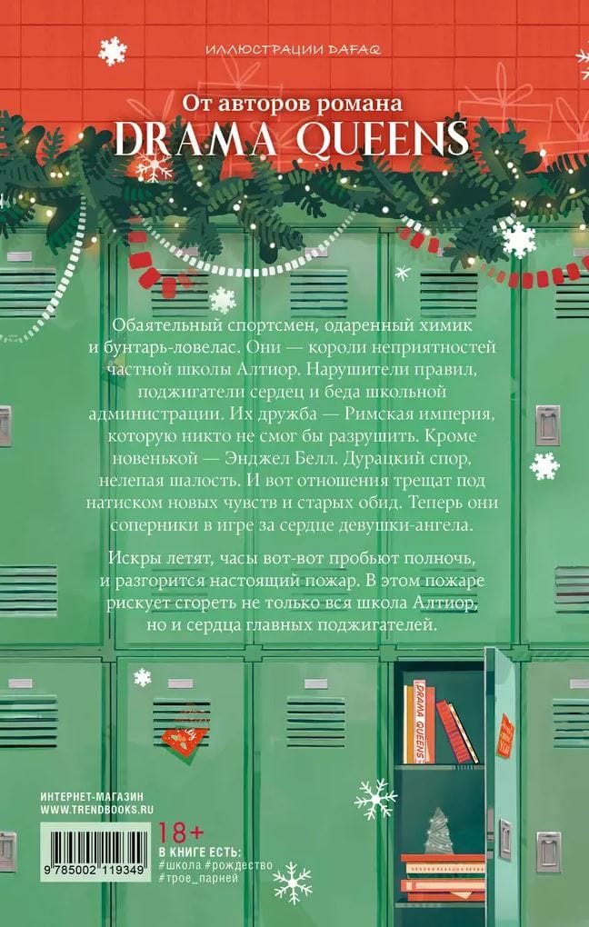 Они — короли неприятностей частной школы Алтиор: обаятельный спортсмен, одаренный химик и бунтарь-ловелас. Их дружбу ничто не смогло бы разрушить, кроме… новенькой Энджел Бэлл. Дурацкий спор, нелепая шалость, и вот они уже соперничают за сердце девушки-Ангела. Отношения трещат под натиском новых чувств и старых обид, искры летят, часы вот-вот пробьют полночь, и разгорится настоящий пожар, в котором рискует сгореть не только школа Алтиор, но и сердца главных поджигателей.