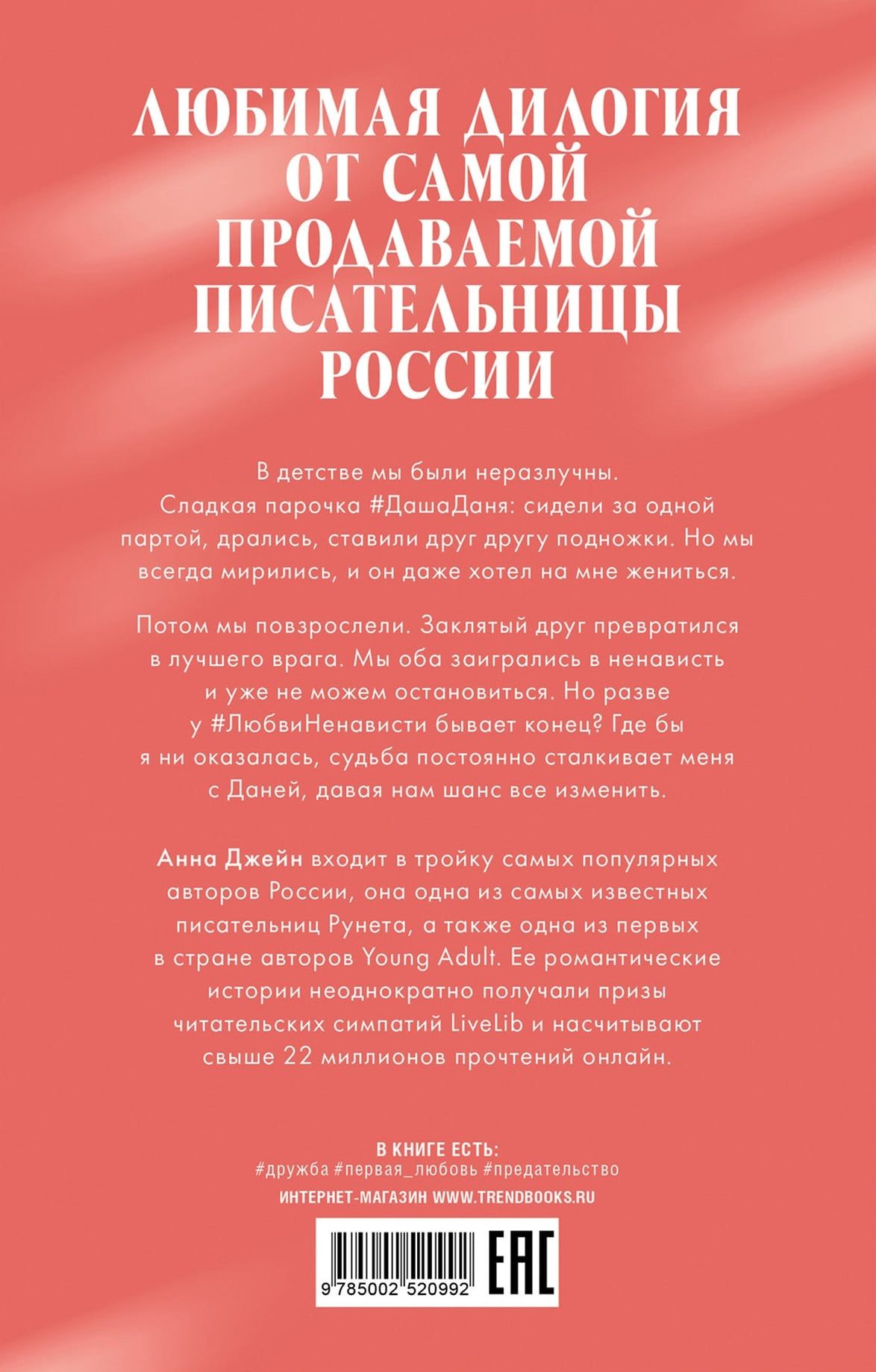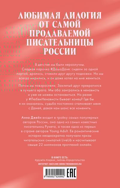 «#ЛюбовьНенависть» — одна из самых популярных книг Анны Джейн, история, в которой герои проходят путь от ненависти до любви, заставляя читателей смеяться и плакать, надеяться и затаив дыхание следить за неожиданными поворотами сюжета. С новой нежной обложкой и дополненный иллюстрациями, роман станет украшением вашей книжной коллекции.