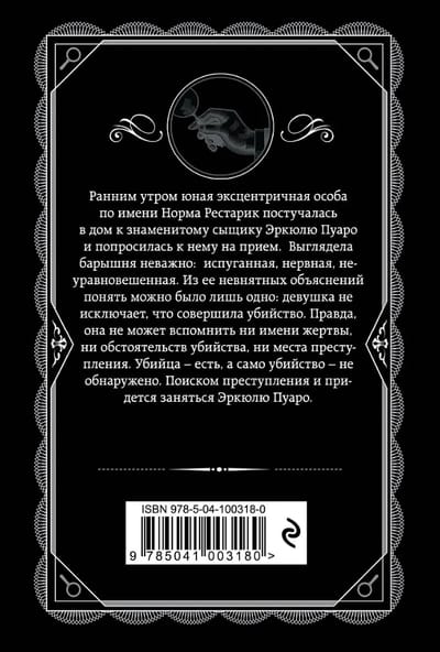 Ранним утром юная эксцентричная особа по имени Норма Рестарик постучалась  в дом к знаменитому сыщику Эркюлю Пуаро и попросилась к нему на прием.  Выглядела барышня неважно:  испуганная, нервная, неуравновешенная. Из ее невнятных объяснений понять можно было лишь одно: девушка не исключает, что совершила убийство. Правда, она не может вспомнить ни имени жертвы, ни обстоятельств убийства, ни места преступления. Убийца – есть, а само убийство – не обнаружено. Поиском преступления и придется заняться Эркюлю Пуаро.