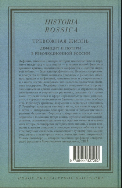 Используя архивные документы и первичные источники, У. Розенберг предлагает взглянуть на то, как сначала царский, а затем и либерально-демократический и большевистский режимы безуспешно боролись с формами и последствиями дефицита. По мнению автора книги, изучение эмоциональных аспектов, скрывающих реальные последствия голода и человеческих потерь, расшифровка исторических эмоций, а также внимание к языкам описания, с помощью которых события и чувства получают связность, способствуют лучшему пониманию социальных и культурных основ революционных потрясений.