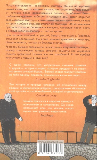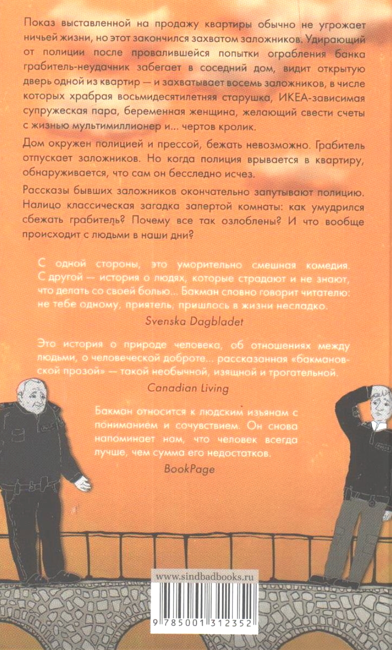 Храбрая восьмидесятилетняя старушка, ИКЕА-зависимая супружеская пара, беременная женщина, желающий свести счеты с жизнью мультимиллионер… эти и еще несколько человек стали заложниками неудачливого грабителя. Он хотел легких денег и ограбить банк, но удача никогда не была его сильной стороной. И теперь он вынужден скрываться от полиции в квартире по соседству. В его планы совершенно не входили восемь заложников. И уж тем более не входили их самые сокровенные истории, которыми те начинают делиться. «Тревожные люди» - целая галерея уязвимых персонажей, тонко подмеченная Бакманом человеческая природа, сотканная из недостатков и изъянов и именно поэтому живая.
