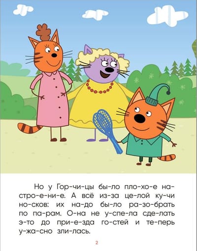 Что делать, если ребенок учится читать, а все сказки и стихи уже зачитаны до дыр? На помощь придет книга «В гостях у Горчицы» из серии «Три кота. Читаю по слогам» — история по мотивам любимого мультфильма. Слова, разделенные на фонетические слоги, крупный шрифт, понятные тексты и яркие иллюстрации — все в этой книге предусмотрено для того, чтобы читать по слогам ребенку было легко и интересно. Удобный формат книг позволит наслаждаться чтением не только дома, но и на прогулке, в пути или в очереди. Из книги «В гостях у Горчицы» ребенок узнает, как назаконченное дело может испортить настроение — и как друзья могут превратить любую скучную работу в веселое приключение.