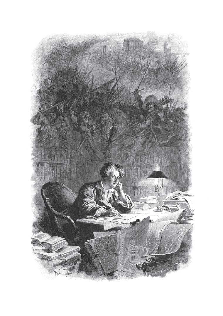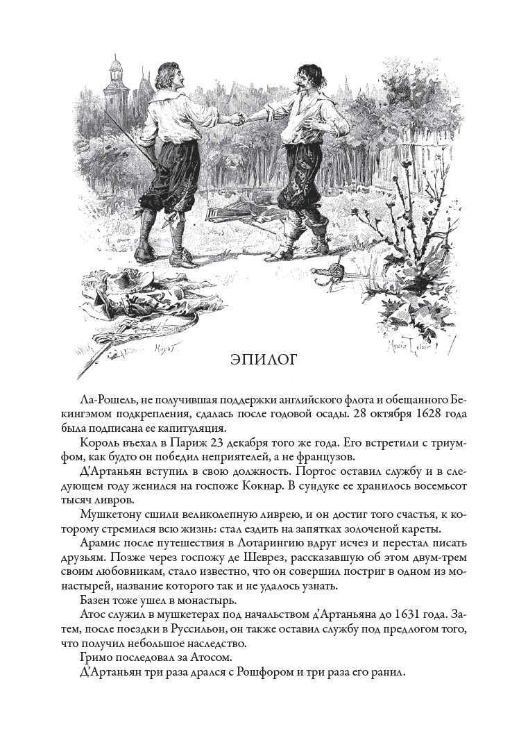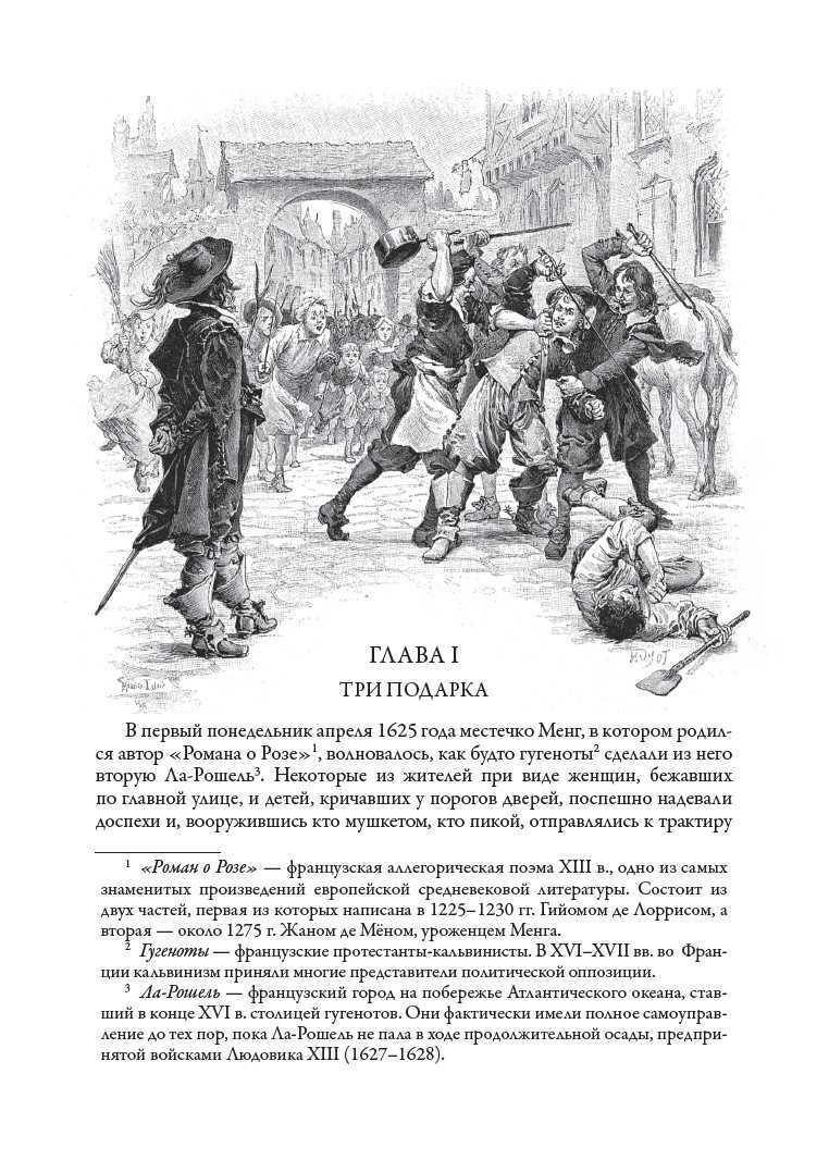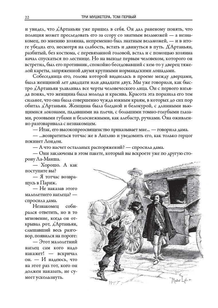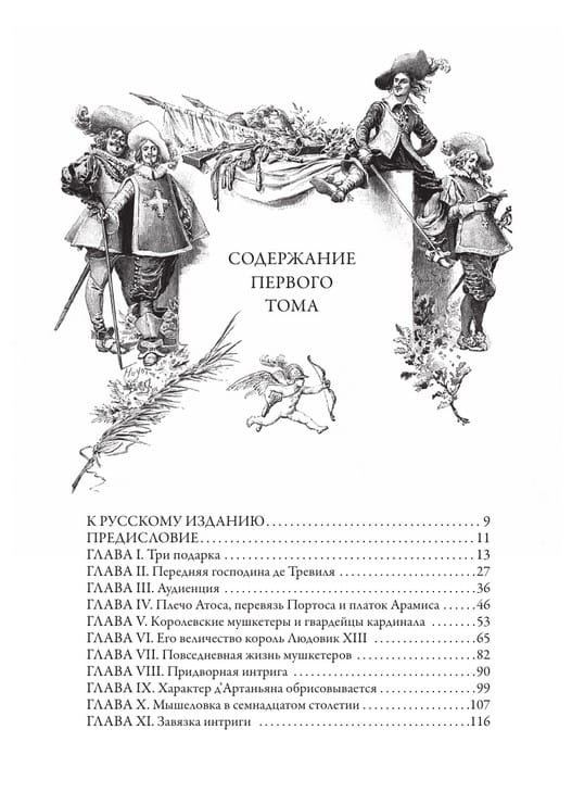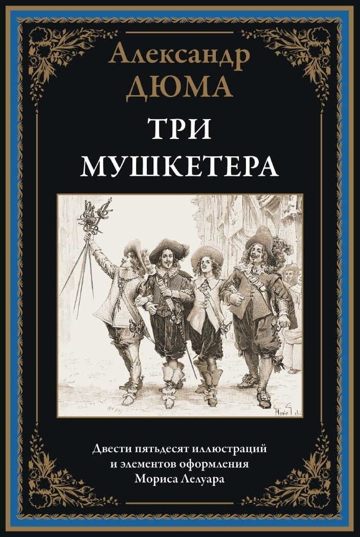 Знаменитый роман Александра Дюма (отца) «Три мушкетера» публикуется в переводе В. М. Строева. Издание украшают более двухсот рисунков французского живописца и иллюстратора Мориса Лелуара, которые принесли этому мастеру всемирную известность. В книге приводятся портреты Дюма-отца и Дюма-сына, две гравюры Г. Доре, изображающие памятник А. Дюма в Париже, а также интереснейший очерк А. И. Куприна «Дюма-отец», который был написан в 1919 г. и опубликован в Париже в 1930 г. в эмигрантской газете «Возрождение».