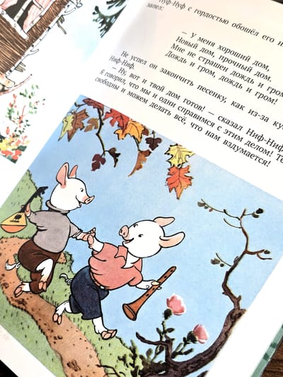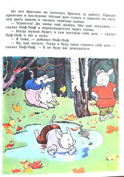 Одна из самых популярных сказок для детей в мире — «Три поросёнка». С XIX века известна английская народная сказка про трёх поросят. Взяв за основу народную сказку, классик отечественной детской литературы Сергей Владимирович Михалков в 30-е годы ХХ века пересказал её. У каждого поросёнка появилось не только своё собственное имя: Ниф-Ниф, Нуф-Нуф, Наф-Наф, но и свой собственный характер. Персонажи сказки стали петь весёлые песенки. Поросятам пришлось пройти через все испытания и на своём примере показать маленькому читателю, как правильно взрослеть, как стать сильным и счастливым «поросёнком».
