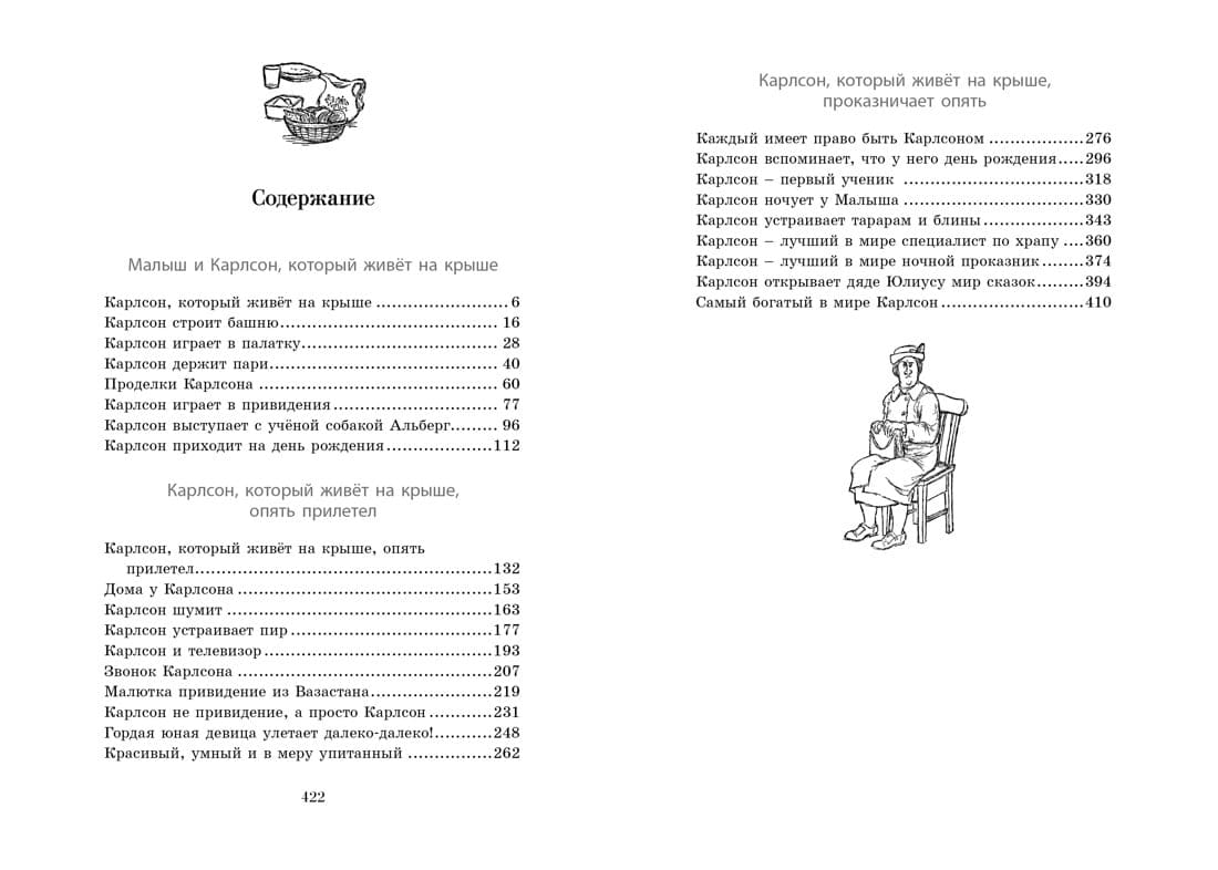 Книга замечательной шведской писательницы Астрид Линдгрен, лауреата многих престижных премий, в том числе золотой медали Андерсена, о Малыше и Карлсоне, который живёт на крыше. Этого толстенького забавного человечка с моторчиком и пропеллером на спине знают и любят дети всего мира. У него непоседливый нрав, и он полон выдумок и фантазий. Он может превратить твой день в тарарам, но с ним никогда не бывает скучно, потому что его девиз: «Надо, чтобы было весело и забавно, а то я не играю!»