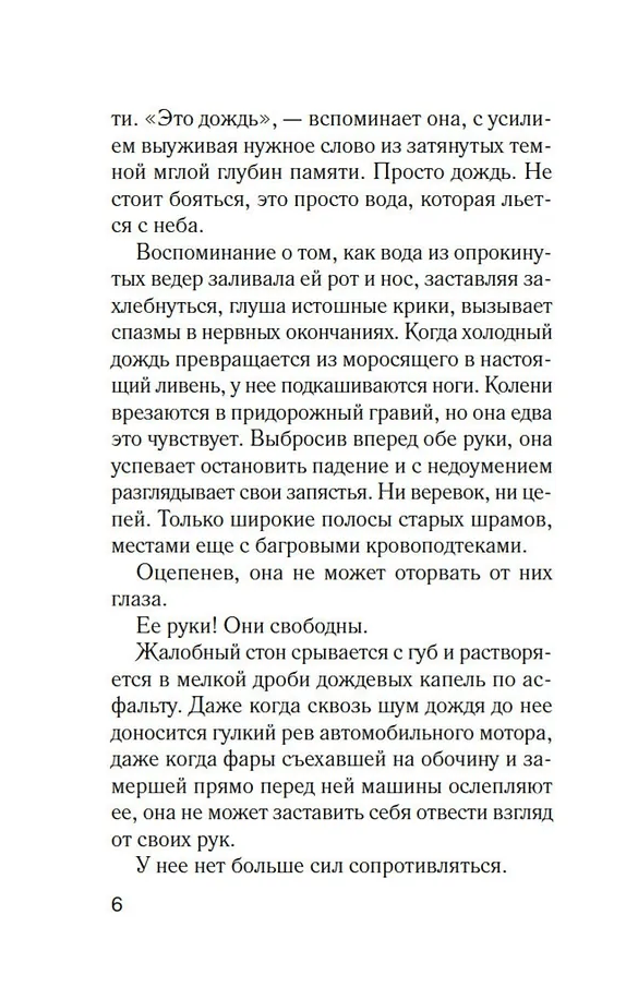 Насилие калечит и тело, и душу, ломает судьбы людей. Тринадцать лет назад маньяк похитил десятилетнюю Эллу Сантос, а через три года отпустил. Беременную. Теперь Элла носит имя Лэйн Морено и под длинными рукавами скрывает жуткие шрамы. Она работает где придется, живет словно на вокзале. Посещает психолога, употребляет антидепрессанты, а мысли о самоубийстве и страшные воспоминания отгоняет наркотиками и алкоголем. Никому на свете не доверяет.