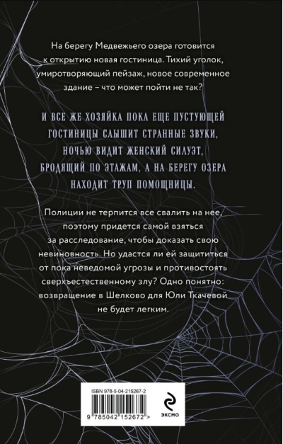 На берегу Медвежьего озера готовится к открытию новая гостиница. Тихий уголок, умиротворяющий пейзаж, новое современное здание — что может пойти не так? И все же хозяйка пока еще пустующей гостиницы слышит странные звуки, ночью видит женский силуэт, бродящий по этажам, а на берегу озера находит труп помощницы. Полиции не терпится все свалить на нее, поэтому придется самой взяться за расследование, чтобы доказать свою невиновность. Но удастся ли ей защититься от пока неведомой угрозы и противостоять сверхъестественному злу? Одно понятно: возвращение в Шелково для Юли Ткачевой не будет легким.