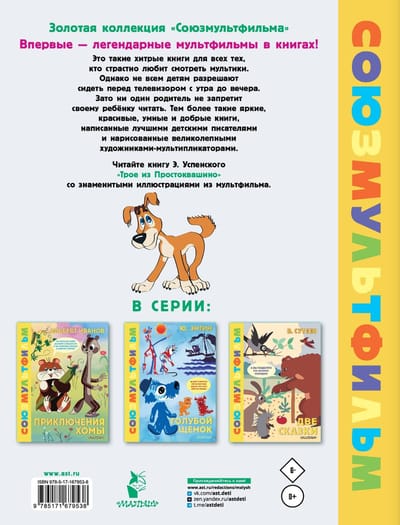 Мультфильмы о «простоквашинцах» уже полвека радуют юных (и не только!) телезрителей. Многие фразы из них стали крылатыми и, что называется, «ушли в народ». Благодаря книжной серии «Золотая коллекция Союзмультфильма» любимые герои всегда будут рядом.
