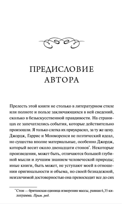 Книга, задуманная как путеводитель по Темзе, стала одной из самых популярных комедий на английском языке. «Трое в лодке, не считая собаки» — история о путешествии троих друзей и фокстерьера Монморенси. Чтобы поправить здоровье, они решают отдохнуть на реке, но их ждет череда неудач: протекающая палатка, сгоревший завтрак и бесконечные споры.