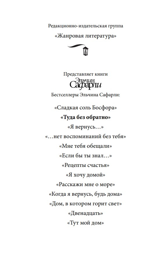 «Туда без обратно» – откровенный роман, отражающий правдивую сторону Востока. Книга, основанная на реальных событиях из жизни русской проститутки в Стамбуле, повествует о женщинах, о любви, одиночестве, вере и предательстве.