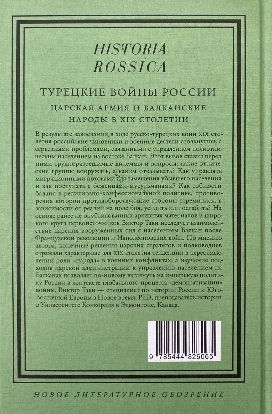 В результате завоеваний в ходе русско-турецких войн XIX столетия российские чиновники и военные деятели столкнулись с серьезными проблемами, связанными с управлением полиэтническим населением на востоке Балкан. Этот вызов ставил перед ними трудноразрешимые дилеммы и вопросы: какие этнические группы вооружать, а каким отказывать? Как управлять миграционными потоками для замещения убывшего населения и как поступать с беженцами-мусульманами? Как соблюсти баланс в религиозно-конфессиональной политике, противоречия которой противоборствующие стороны стремились, в зависимости от реалий на поле боя, усилить или ослабить? На основе ранее не опубликованных архивных материалов и широкого круга первоисточников Виктор Таки исследует взаимодействие царских вооруженных сил с населением Балкан после Французской революции и Наполеоновских войн. По мнению автора, конечные решения царских стратегов и полководцев отражали характерные для XIX столетия тенденции в переосмыслении роли «народа» в военных конфликтах, а изучение подходов царской администрации к управлению населением на Балканах позволяет по-новому взглянуть на имперскую политику России в контексте глобального процесса «демократизации» войны. Виктор Таки — специалист по истории России и Юго-Восточной Европы в Новое время, PhD, преподаватель истории в Университете Конкордия в Эдмонтоне, Канада.
