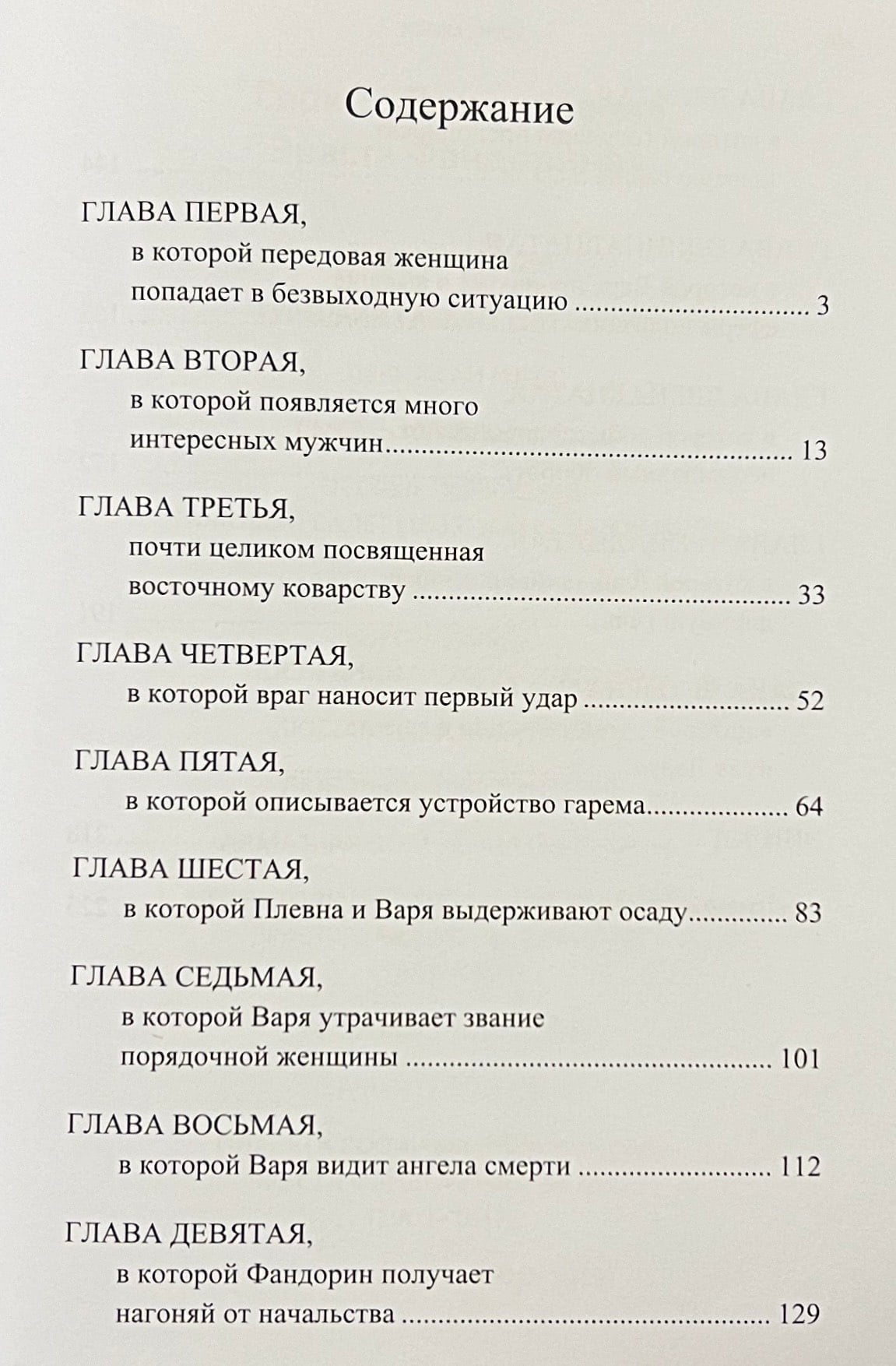 1877 год. Российская империя участвует в жесточайшей русско-турецкой войне. Юная девушка Варвара Суворова, петербургская красавица передовых взглядов и почти нигилистка, отправляется в зону боевых действий к жениху. По пути она встречает русского волонтера, везущего крайне важную информацию для командования русской армии... Вторая книга серии «Приключения Эраста Фандорина».