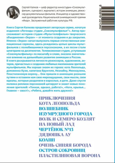 Кто они, «волшебники "Экрана”», подарившие нам мультсериал «Приключения Незнайки», циклы о коте Леопольде, о поросёнке Фунтике, о домовёнке Кузе и многие другие? Зрители не задумывались, какой студии принадлежали мультфильмы, включая телевизор и собираясь всей семьёй у экрана. Эта книга не только о студии, но и о творцах, тех, кто создавал наши любимые сериалы, разошедшиеся на цитаты, на которых выросло не одно поколение. Как они жили? Какие тайны и трагедии откроют они читателям? Что такое талант мультипликатора? Что мы потеряли с уничтожением Творческого объединения «Экран»?
