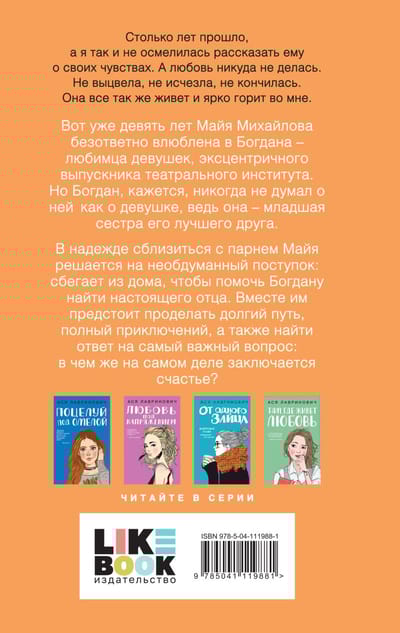 Вот уже девять лет Майя Михайлова безответно влюблена в Богдана — любимца девушек, эксцентричного выпускника театрального института. Но Богдан, кажется, никогда не думал о ней как о девушке, ведь она — младшая сестра его лучшего друга. В надежде сблизиться с парнем Майя решается на необдуманный поступок: сбегает из дома, чтобы помочь Богдану найти настоящего отца. Вместе им предстоит проделать долгий путь, полный приключений, а также найти ответ на самый важный вопрос: в чем же заключается счастье?
