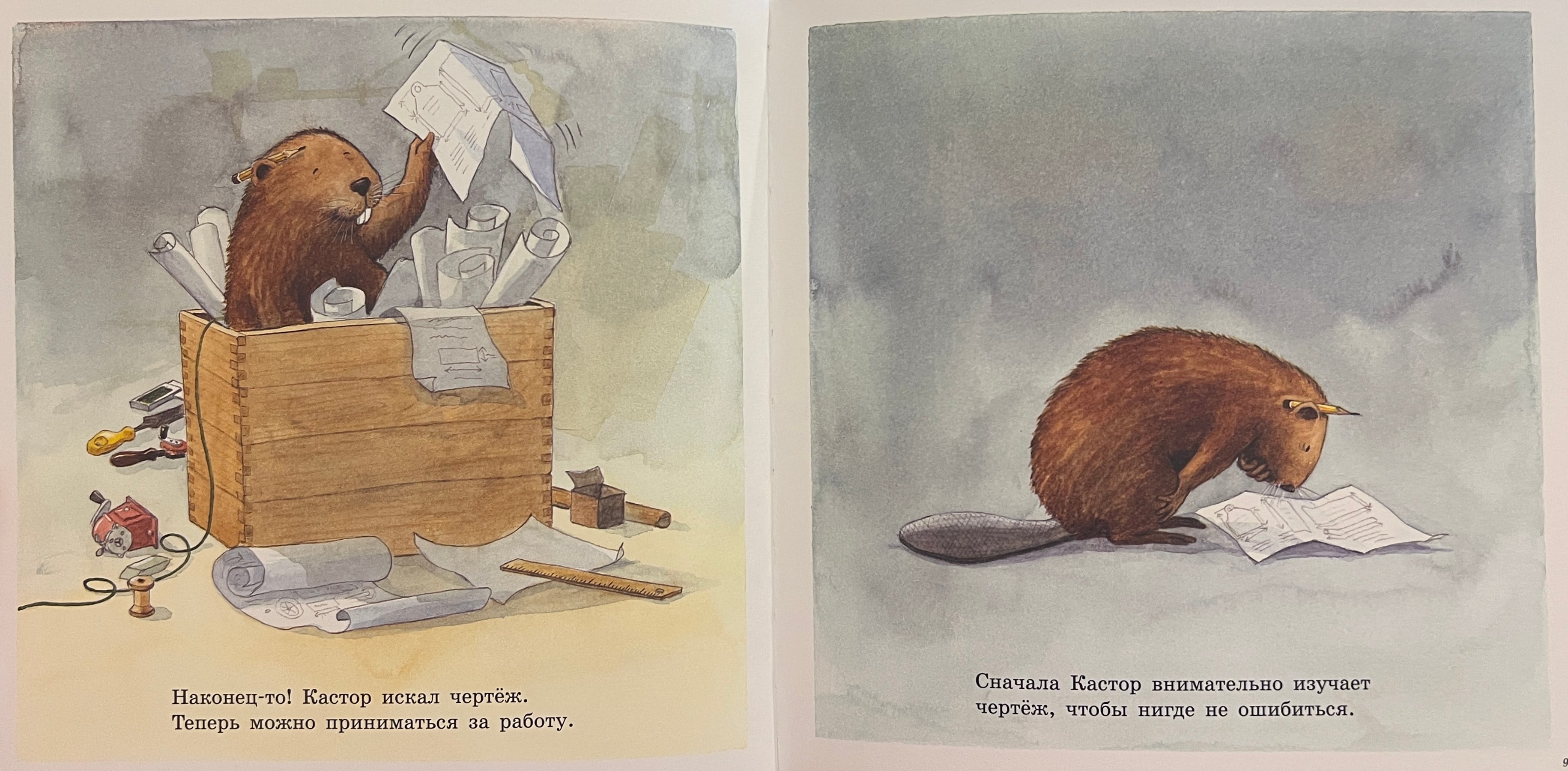 На этот раз бобер Кастор решает самостоятельно изготовить деревянный ящичек для инструментов. Он берет чертеж, расчерчивает дощечки при помощи складного метра и угольника, выпиливает детали пилой и лобзиком, сверлит в нужных местах отверстия, ошкуривает наждачной бумагой заготовки и наконец соединяет все части шурупами и гвоздями. Готово! Каждый шаг создания деревянного ящичка подробно проиллюстрирован и описан, а кроме того, в деталях прорисованы и перечислены все инструменты, которые понадобятся для работы, среди которых ножовка, лобзик, коловорот, киянка, ручная дрель, клещи, молоток, отвертка и другие. Чем не первая энциклопедия инструментов для мальчишек? А в конце книги – точный чертеж ящичка со всеми размерами, чтобы папы после прочтения книжки тут же могли приняться за дело вместе с сыновьями – не откладывая дело в долгий ящик! Книга прекрасно подойдет для творческого досуга с детьми 3-6 лет. Бобра Кастора знают и любят дети в двадцати пяти странах мира. Его создатель - легендарный шведский детский писатель и иллюстратор Ларс Клинтинг, обладатель множества международных наград.