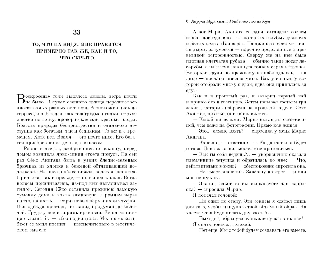 «Убийство Командора» — шедевр, написанный известным в Японии художником Томохико Амадой. Картина, которую никто не должен видеть. Но главный герой романа, художник-портретист, нашел полотно на чердаке дома Томохико Амады, когда поселился в нем после расставания с женой. «Выходит, началом всему, что происходит вокруг меня, стало то, что я вынес на свет эту картину? И тем самым разомкнул круг?»