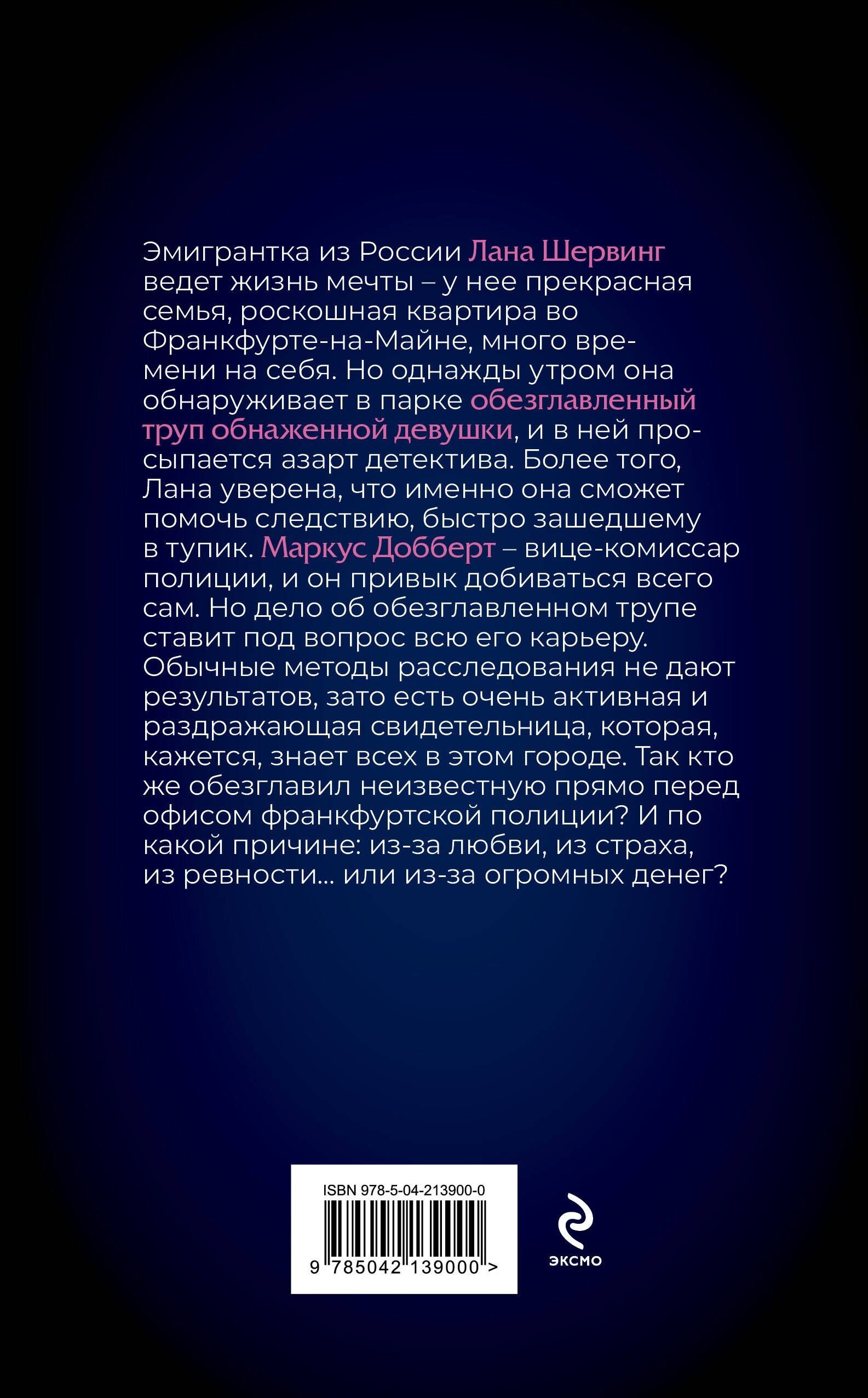 Эмигрантка из России Лана Шервинг ведет жизнь мечты — у нее прекрасная семья, роскошная квартира во Франкфурте-на-Майне, много времени на себя. Но однажды утром она обнаруживает в парке обезглавленный труп обнаженной девушки, и в ней просыпается азарт детектива. Более того, Лана уверена, что именно она сможет помочь следствию, быстро зашедшему в тупик.