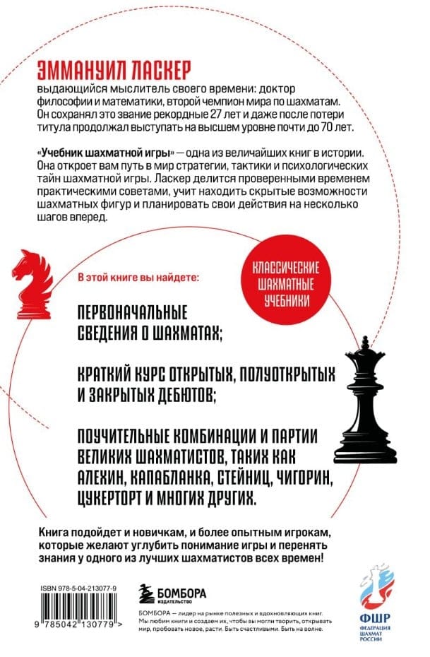 «Учебник шахматной игры» — одна из величайших книг в истории. Она откроет вам путь в мир стратегии, тактики и психологических тайн шахматной игры. Ласкер делится проверенными временем практическими советами, учит находить скрытые возможности шахматных фигур и планировать свои действия на несколько шагов вперед.