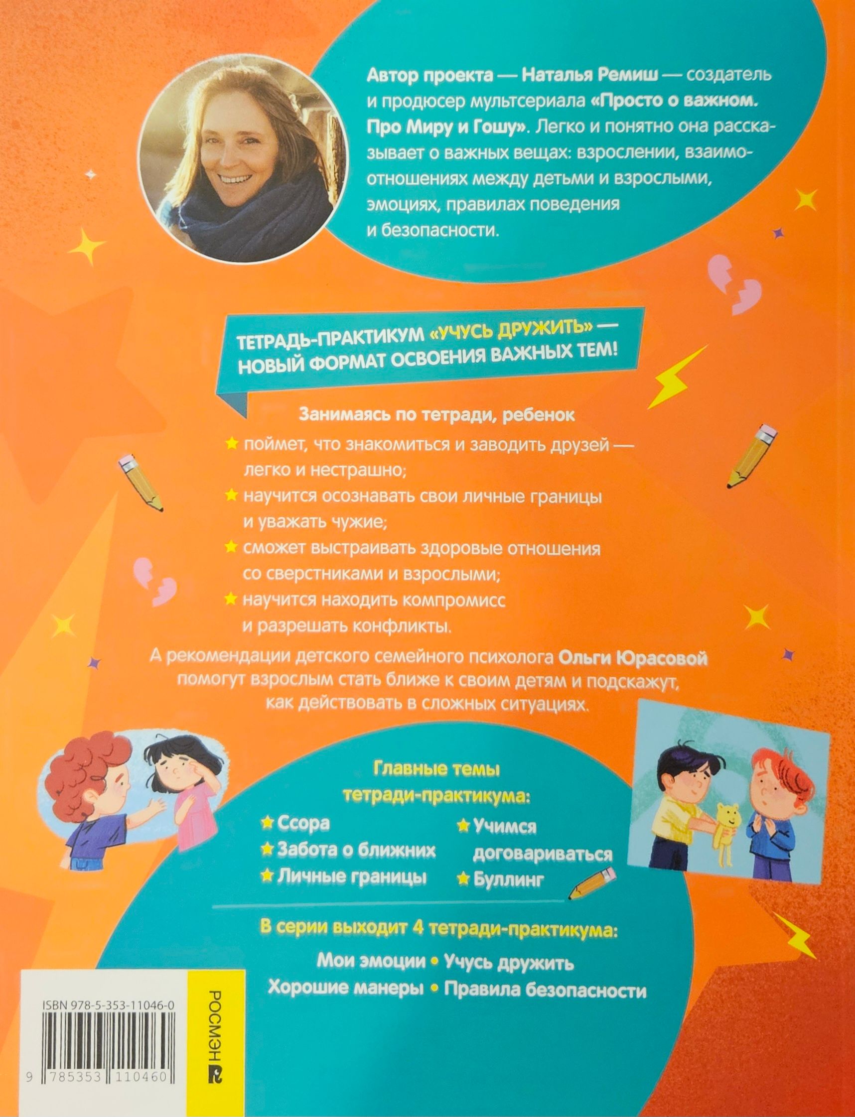 Тетрадь-практикум «Учусь дружить» поможет ребенку сделать первые успешные шаги на пути социализации. Знакомые ситуации пнаучат распознавать трудности; увлекательные задания и профессиональные советы покажут, как с ними справиться. А яркие иллюстрации сделают совместную работу детей и взрослых еще интереснее.