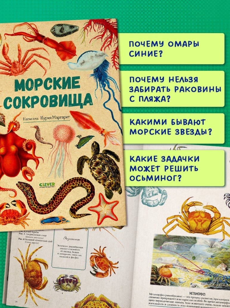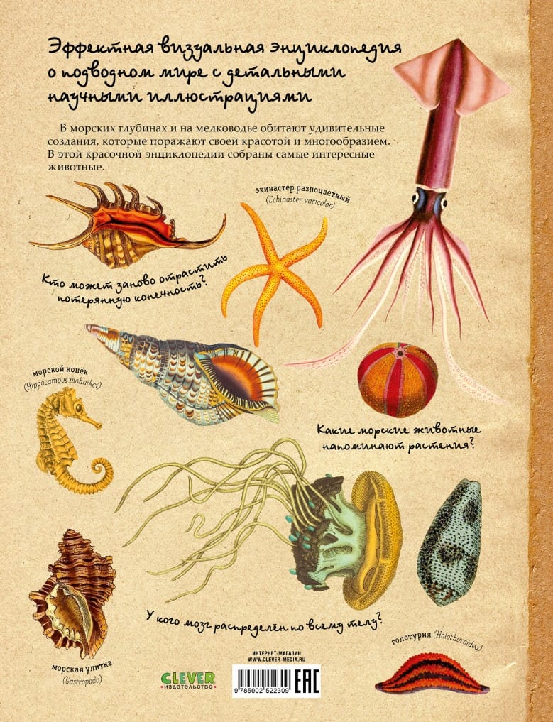 В морских глубинах и на мелководье обитают удивительные создания, которые поражают своей красотой и многообразием. Энциклопедия для мальчиков и девочек, которую выпускает издательство Clever, предлагает вам погрузиться в увлекательный подводный мир на страницах книги для подростков и открыть для себя сокровища, которые он скрывает.
