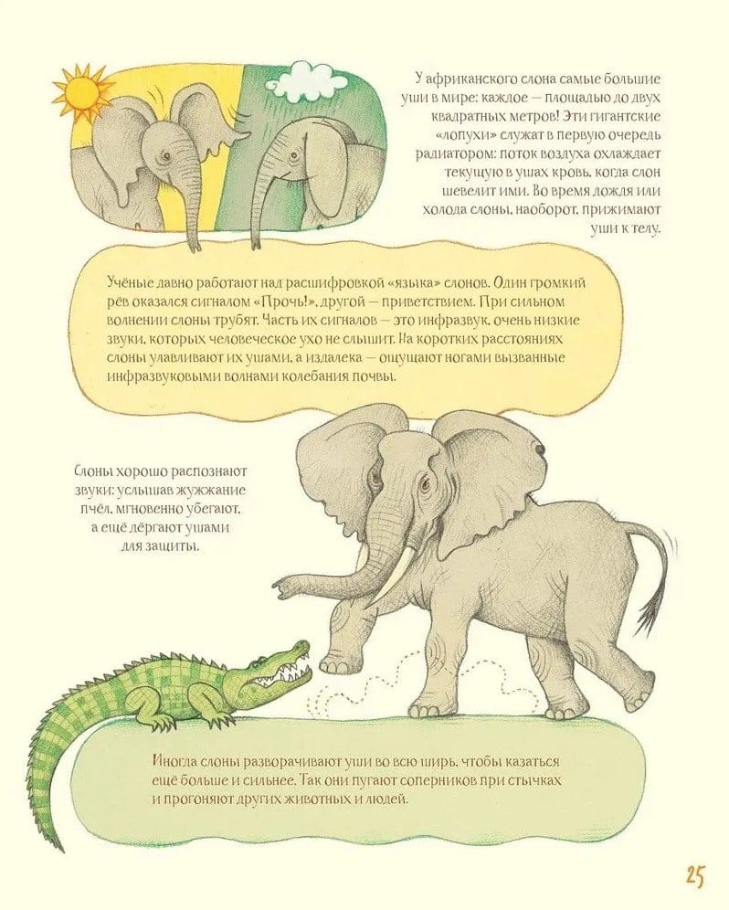 Из новой книги Лены Анлауф с рисунками Виталия Константинова вы узнаете, как много у ушей разных «профессий». Ушные раковины не только усиливают звук, но и регулируют температуру тела, спасают от хищников (причём разными способами!), помогают животным разговаривать друг с другом да ещё и «улыбаться». А бывает, что они мешают своим обладателям — и как же звери справляются? Уши-мухобойки, уши-ветроуказатели, маскировочные уши, бойцовские уши, ложные уши — добро пожаловать в богатый и разнообразный ушной мир!