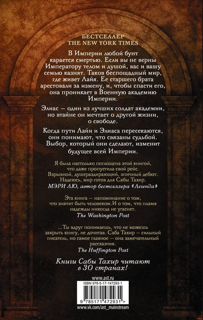 В Империи любой бунт карается смертью. Если вы не верны Императору телом и душой, вас и вашу семью казнят. Таков беспощадный мир, где живет Лайя. Ее старшего брата арестовали за измену и, чтобы спасти его, она проникает в Военную академию Империи. Элиас — один из лучших солдат академии, но втайне он мечтает о другой жизни, о свободе. Когда пути Лайи и Элиаса пересекаются, они понимают, что связаны судьбой. Выбор, который они сделают, изменит будущее всей Империи.
