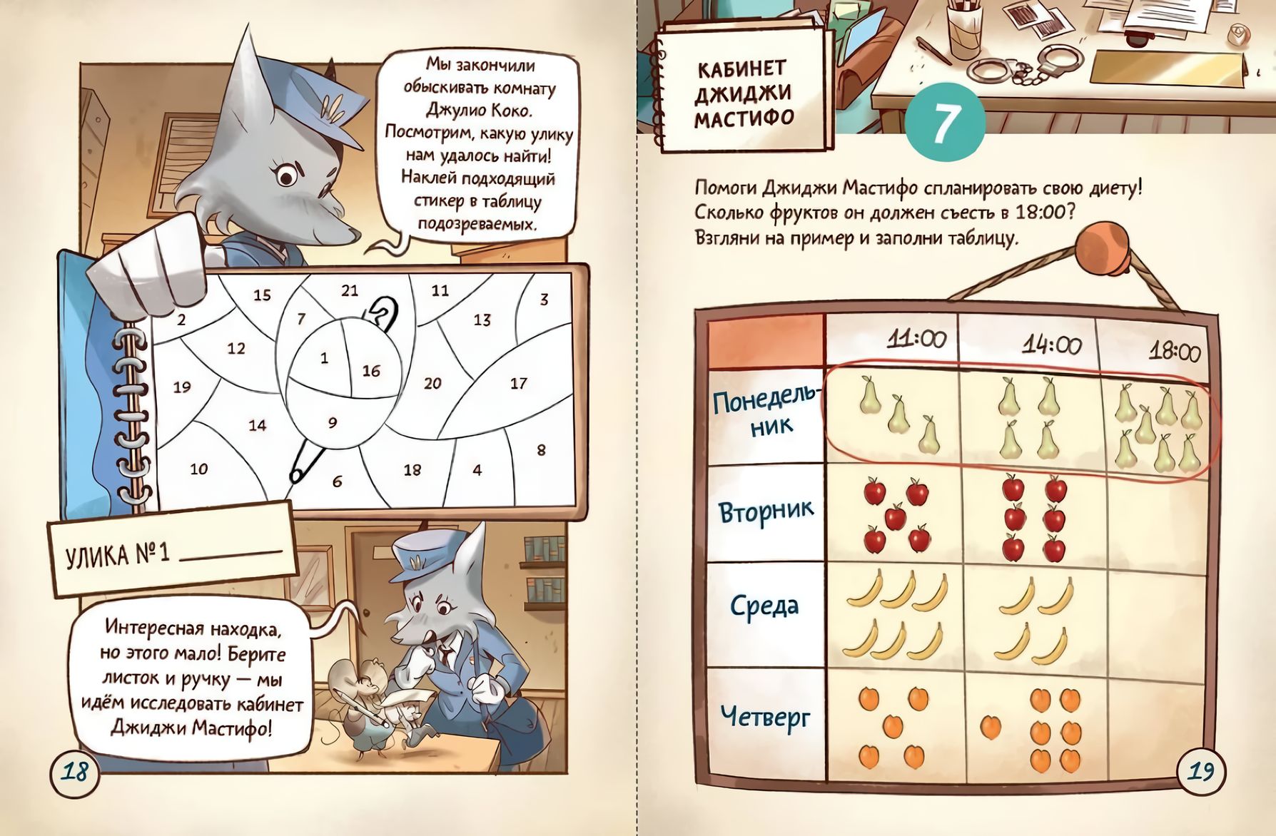Опытные педагоги и психологи университета Падуи создали игру-расследование, которая поможет углубить знания по математике учеников начальной школе. Неожиданные повороты сюжета, яркие персонажи, комиксы и наклейки-улики сделают обучение интереснее и эффективнее, а также помогут ребёнку избавиться от «математической тревожности». В книге дети повторят числа от 1 до 20, решат примеры на сложение и вычитание, познакомятся с теорией вероятности, выучат единицы измерения массы.