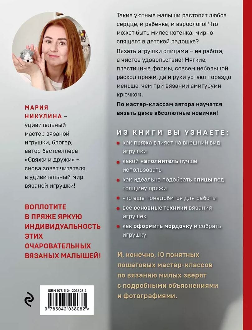 Очаровательные малыши, почти как живые! Спящий в детской ладошке котенок или крохотная чайка в красном шарфике — связанные спицами игрушки бесконечно умиляют и вызывают улыбку! Целая коллекция связанных зверят ждет вас в новой книге Марии Никулиной, на этот раз посвященной миниатюрам.
