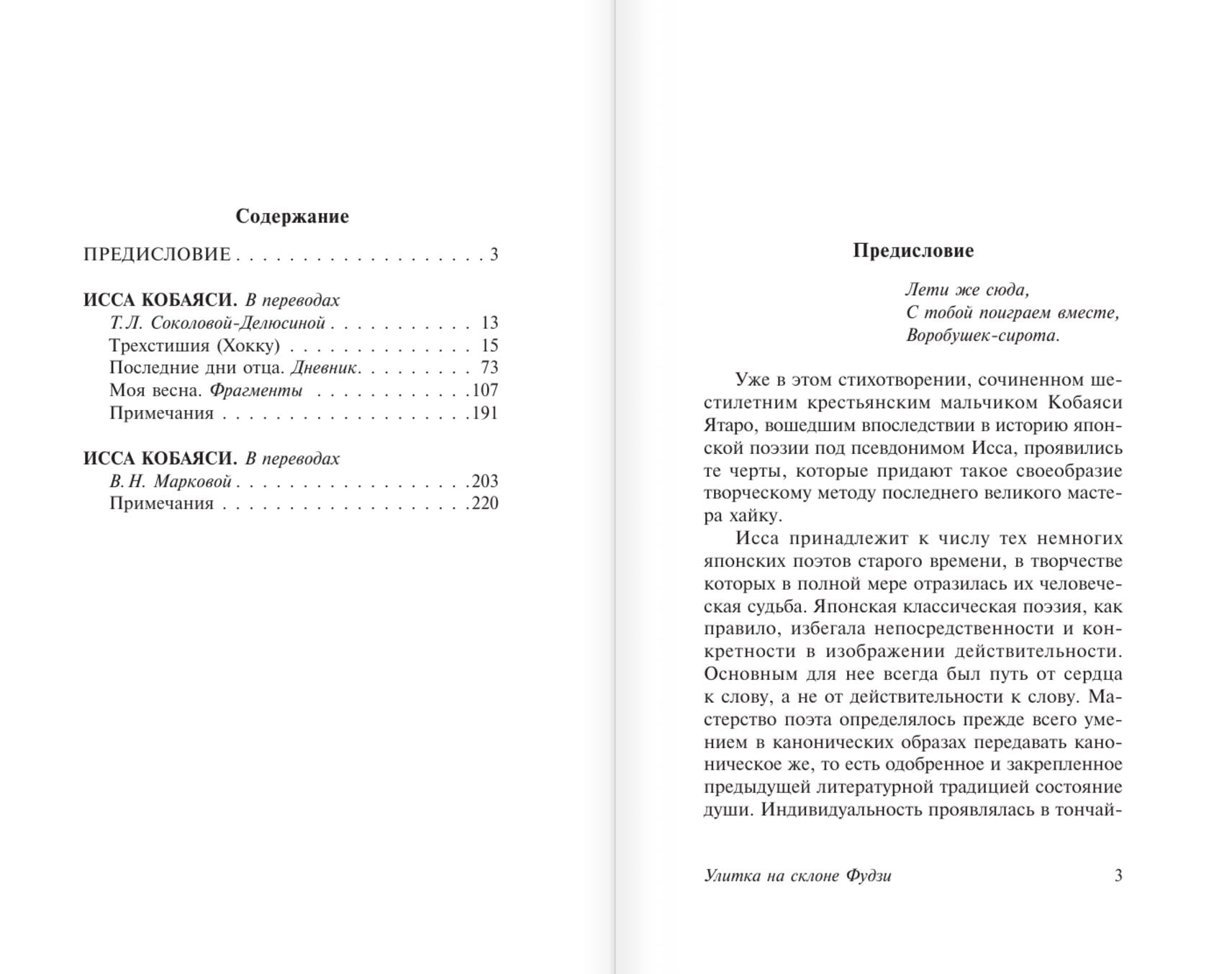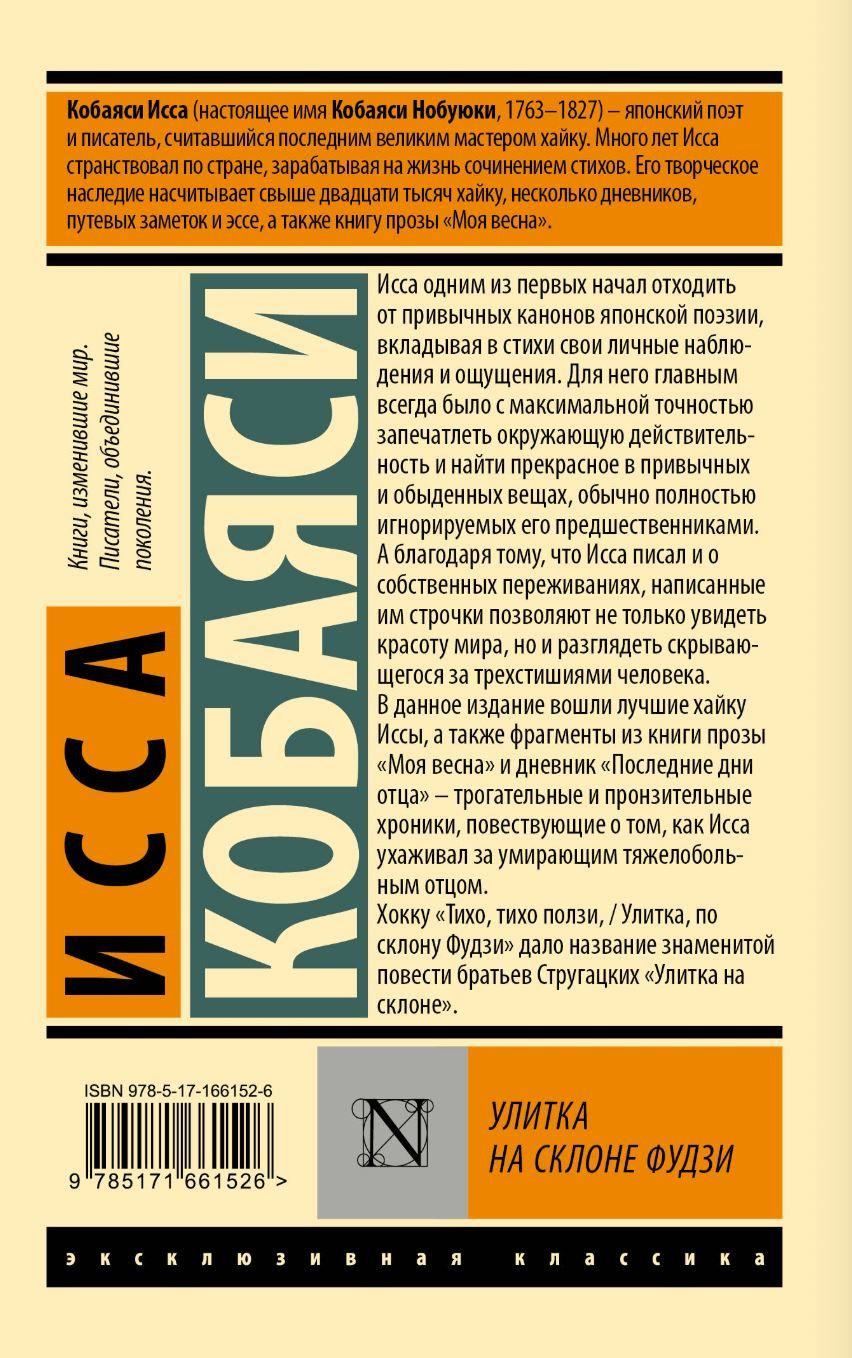В данное издание вошли лучшие хайку Иссы, а также фрагменты из книги прозы «Моя весна» и дневник «Последние дни отца» — трогательные и пронзительные хроники, повествующие о том, как Исса ухаживал за умирающим тяжелобольным отцом.