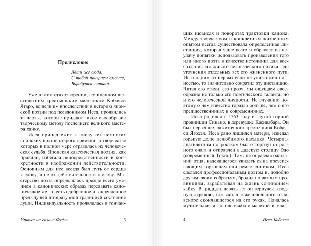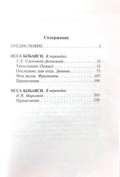 В данное издание вошли лучшие хайку Иссы, а также фрагменты из книги прозы «Моя весна» и дневник «Последние дни отца» — трогательные и пронзительные хроники, повествующие о том, как Исса ухаживал за умирающим тяжелобольным отцом.