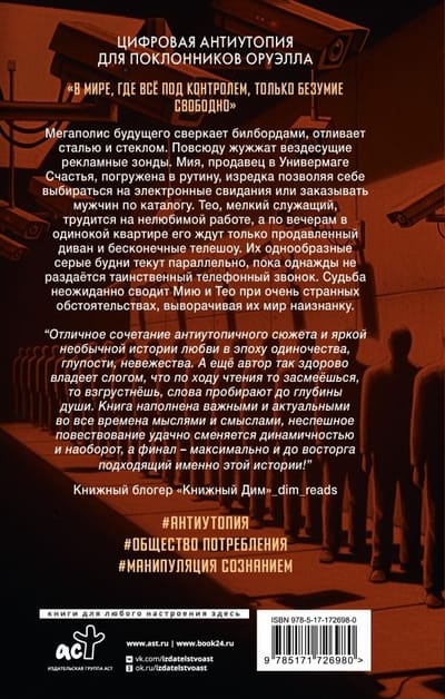 Мегаполис будущего сверкает билбордами, отливает сталью и стеклом. Повсюду жужжат вездесущие рекламные зонды. Мия, продавец в Универмаге Счастья, погружена в рутину, изредка позволяя себе выбираться на электронные свидания или заказывать мужчин по каталогу. Тео, мелкий служащий, трудится на нелюбимой работе, а по вечерам в одинокой квартире его ждут только продавленный диван и бесконечные телешоу. Их однообразные серые будни текут параллельно, пока однажды не раздаётся таинственный телефонный звонок. Судьба неожиданно сводит Мию и Тео при очень странных обстоятельствах, выворачивая их мир наизнанку.