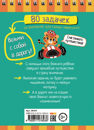 Открыв этот блокнот, ребёнок попадёт в волшебную страну с задачками на внимание. Вооружившись карандашом, он будет искать отличия в картинках, потерянные вещи, спрятавшихся животных - развивать внимание, мелкую моторику и мышление. Малыши могут показывать ответы пальчиком. В дороге или на отдыхе такой блокнот будет просто незаменим. Адресовано детям от 3 лет.