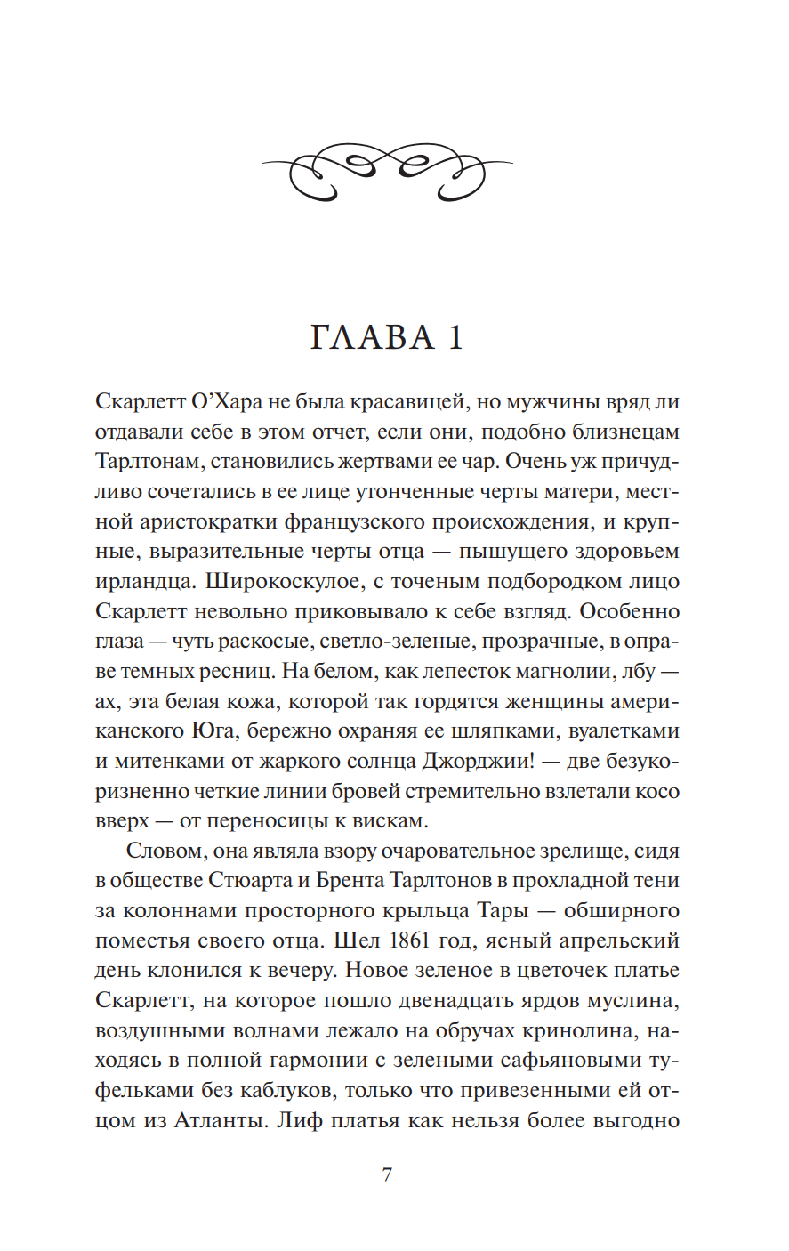 Ее героиня, юная Скарлетт О’Хара, умна, красива и своенравна. Дочь состоятельного землевладельца, она привыкла получать все что захочет. И поэтому твердо намерена разрушить помолвку Эшли Уилкса, соседского сына, в которого давно влюблена. Но очень скоро жизни тех, кого она любит, — и ее собственная — бесповоротно изменятся: на порог приходит война.