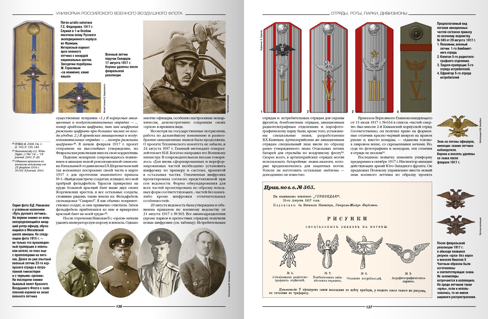 Основная ценность представленного в книге материала — подлинные документы и изображения, позволяющие на научной основе проследить все обстоятельства появления, существования и отмены элементов форменного и специального обмундирования, использовавшихся российскими и советскими летчиками. Большинство архивных материалов, подлинных рисунков и фотографий выявлено авторами и впервые введено в научный оборот. Качественно представленные подлинные предметы униформы, снаряжения и вооружения из музейных и частных коллекций дополняются рисунками и реконструкциями, выполненными художниками специально для этого издания.