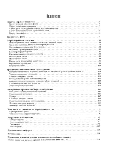 Книга посвящена обмундированию, снаряжению и личному оружию военнослужащих российского военно-морского флота времен царствования императоров Александра III и Николая II, а также периода Временного правительства, т.е. с марта 1881 по октябрь 1917 г. В указанную эпоху флот активно развивался, что влекло за собой различные организационно-штатные нововведения. Появлялись целые категории военно-морских чинов, такие как кондукторы флота и корабельные гардемарины. Неоднократно реформировались корпуса морского ведомства и система военно-морского образования. Все это оказало значительное влияние на обмундирование и знаки различия военных моряков.