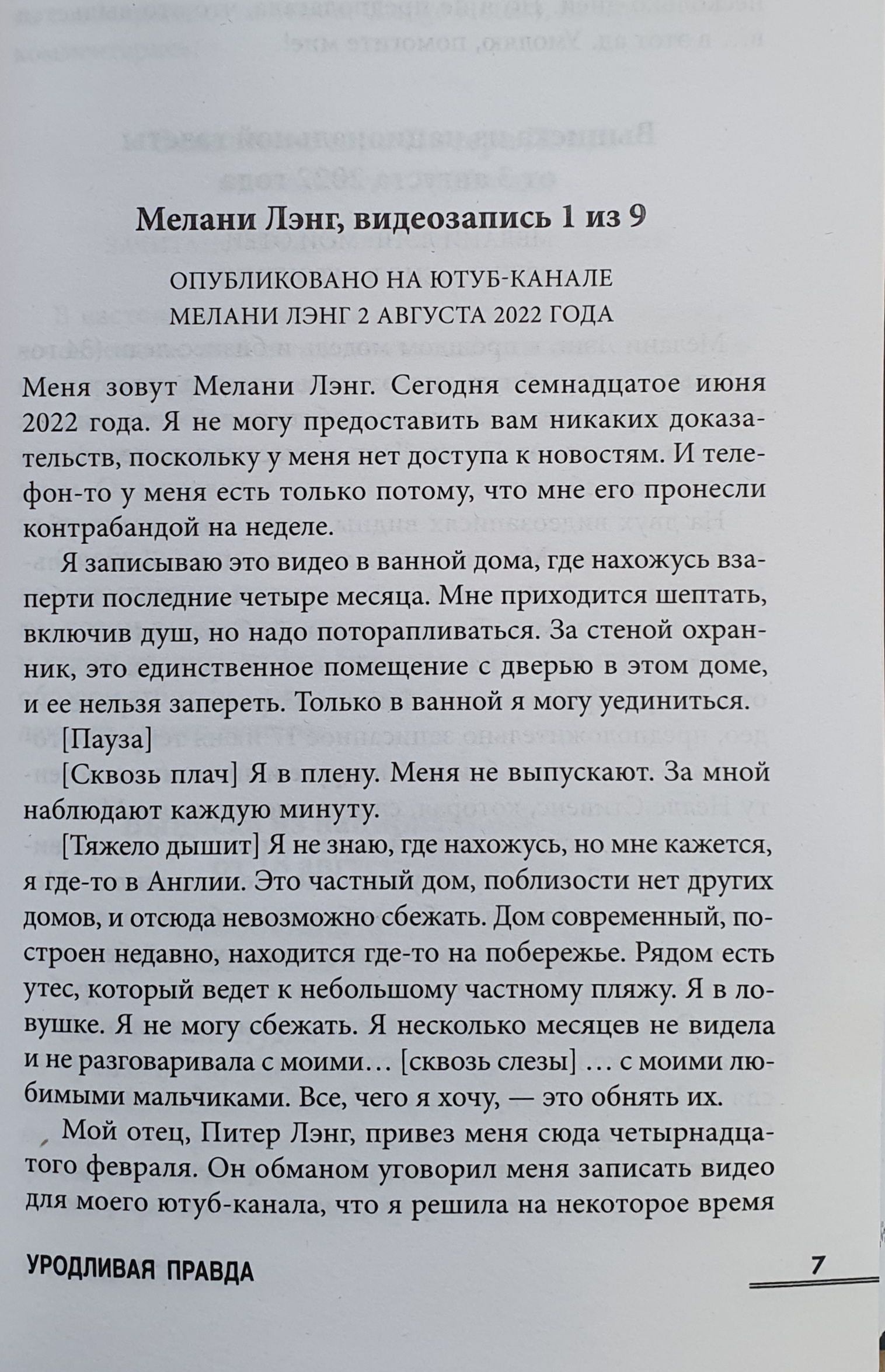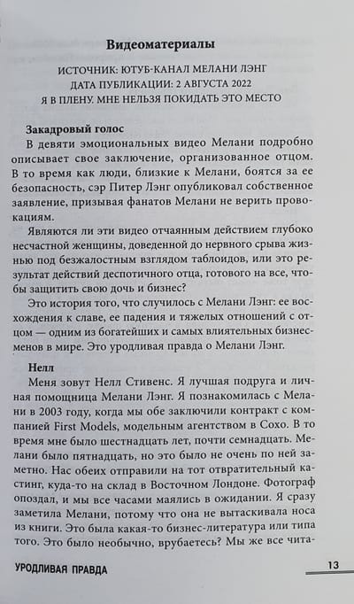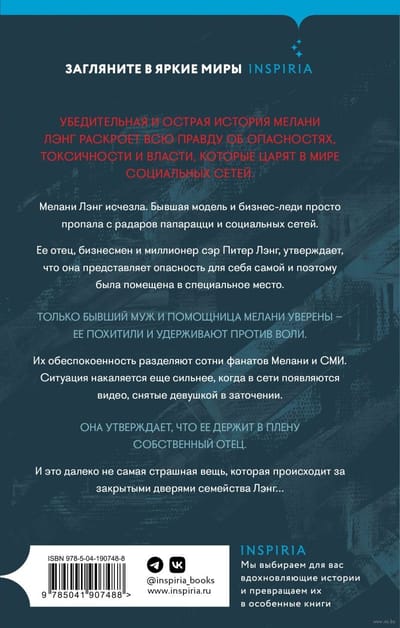Мелани Лэнг исчезла. Бывшая модель и бизнес-леди просто пропала с радаров папарацци и социальных сетей. Ее отец, бизнесмен и миллионер, сэр Питер Лэнг утверждает, что она представляет опасность для себя самой и поэтому была помещена в специальное место. Только бывший муж и помощница Мелани уверены — ее похитили и удерживают против воли. Их обеспокоенность разделяют сотни фанатов Мелани и СМИ. Ситуация накаляется еще сильнее, когда в Сети появляются видео, снятые девушкой в заточении. Она утверждает, что ее держит в плену собственный отец. И это далеко не самая страшная вещь, которая происходит за закрытыми дверями семейства Лэнг…
