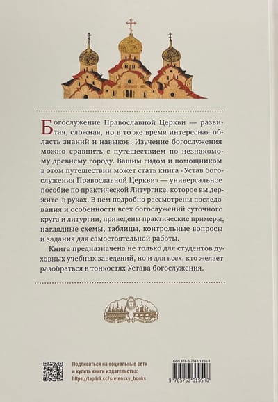 Настоящая книга создана на основе «Устава православного богослужения» (впервые издан в 2010 году). По сравнению с прежним изданием добавлено много нового материала (дидактического и вспомогательно-практического), изменена концепция издания. Книга может использоваться не только как учебное пособие по Литургике для студентов I—II курсов духовных учебных заведений, но и для самостоятельного изучения Церковного Устава. В данном самоучителе достаточно подробно рассматриваются последования и особенности всех богослужений суточного круга и литургии; также предложены практические примеры, наглядные схемы, таблицы, контрольные вопросы и задания для самостоятельной работы.
